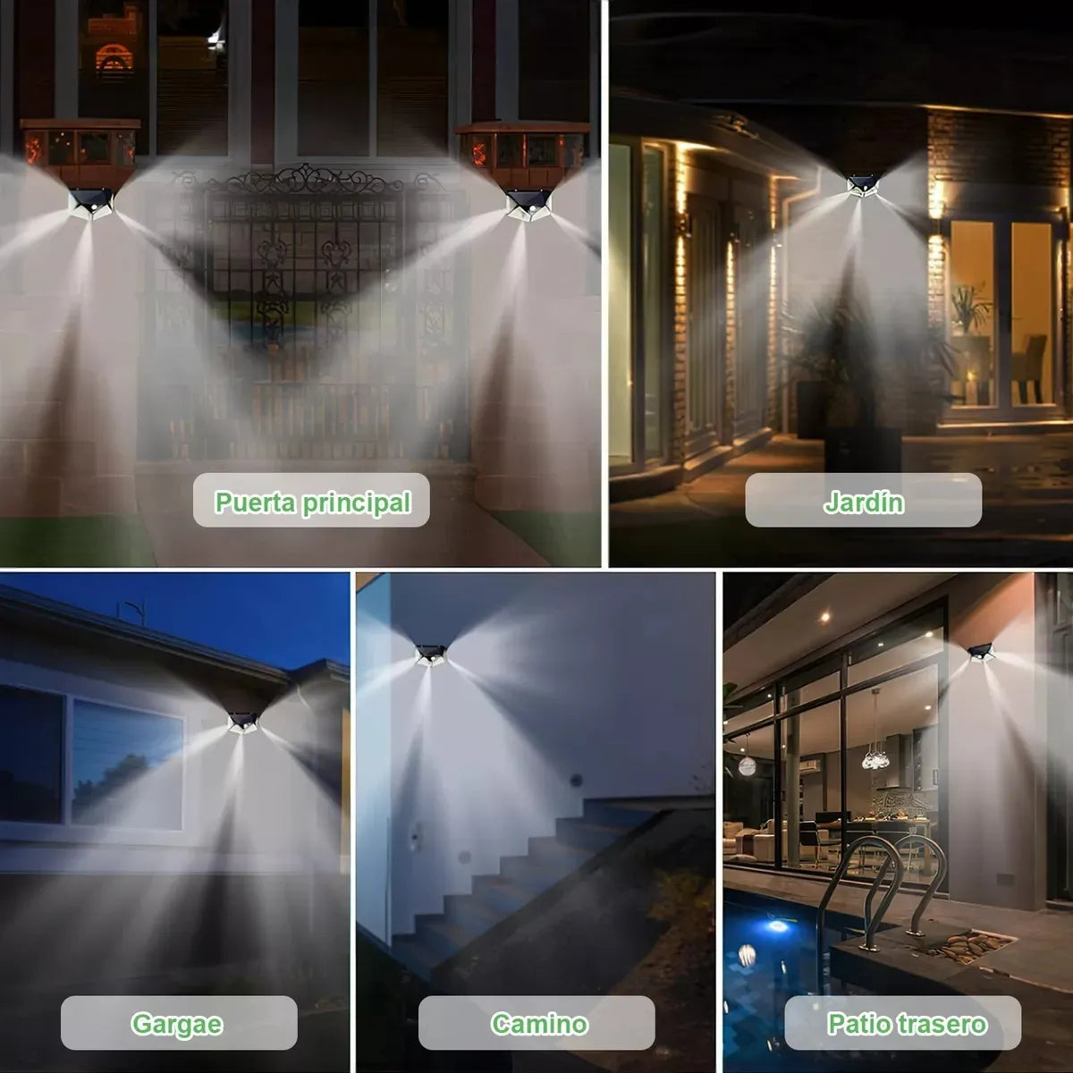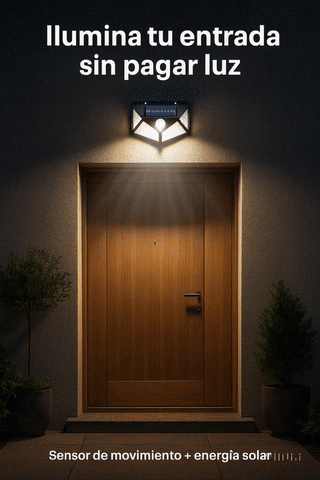 Esta lámpara solar se enciende sola cuando detecta movimiento, ofreciendo una iluminación potente y segura sin necesidad de cables ni instalaciones complicadas.